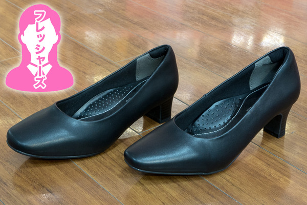 がんばる女子の正統派Fitパンプスは「8つの」こだわり機能付き!しっかり曲がって足にフィット、アーチクッションで足裏サポート、かかとクッションで脱げにくい、滑りにくい安心の「溝入り」ソール…などなど、働く女性を足元からサポートします!