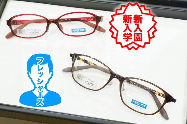 FREE FiT(フリーフィット)」は従来のメガネの約半分ほどの軽さ!ラクなかけ心地が特長で、豊富なデザインの中から親子で揃えることもできますよ!