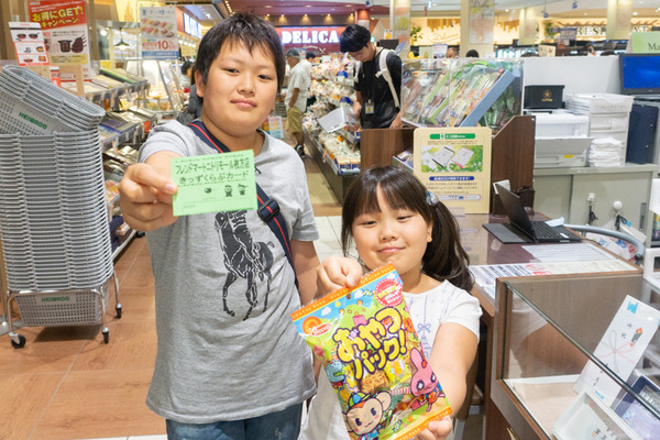 キッズカードもハンコが貯まると、お菓子の詰合せがもらえるねん