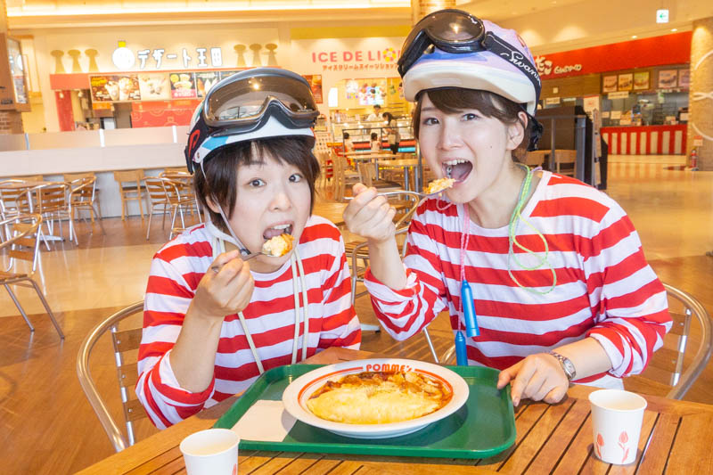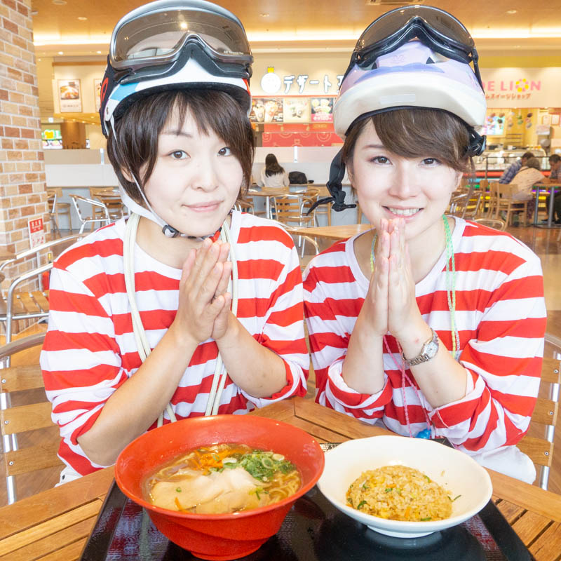 今回は競馬の騎手であるジョッキーを意識した格好のばばっちとアンドゥが、ニトリモールで食べられるグルメをダービー形式でご紹介![]()