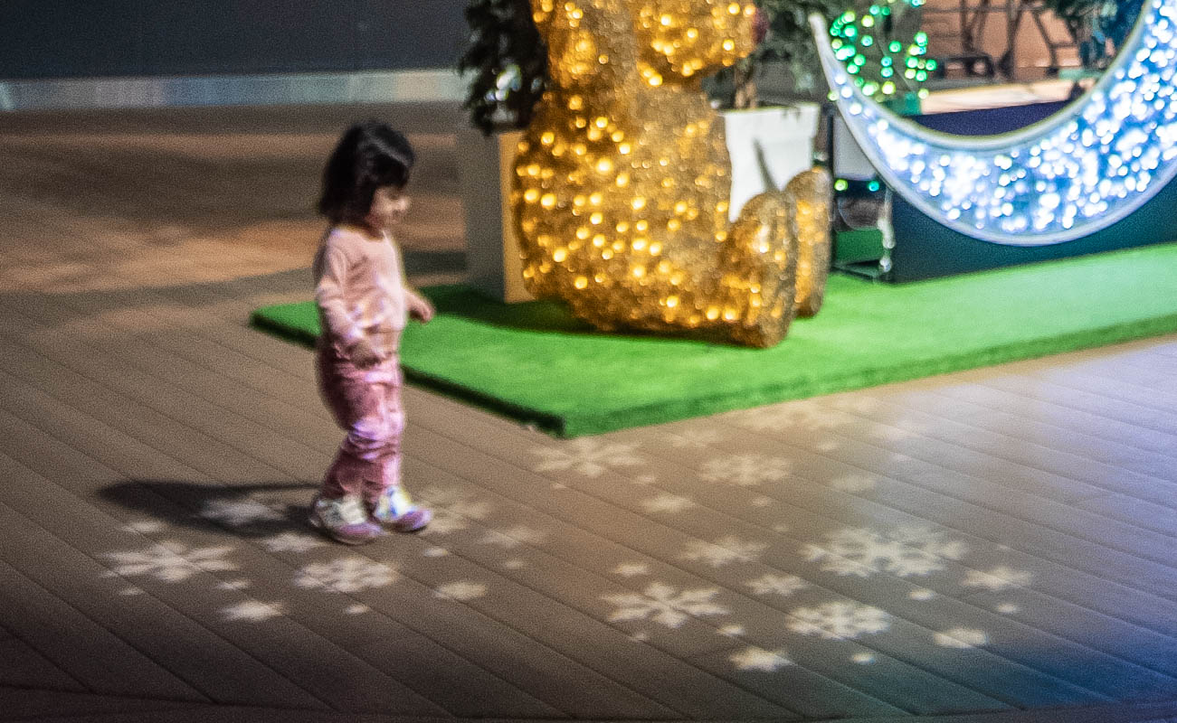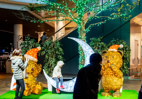 今の時期はクリスマスをテーマに赤や緑の光をたくさん使ったイルミネーションや、ジングルベルの音楽の音楽に合わせて輝くツリーを中心とした、光と音のエンターテインメントをご家族の皆さまに楽しんでいただけたらと思います。