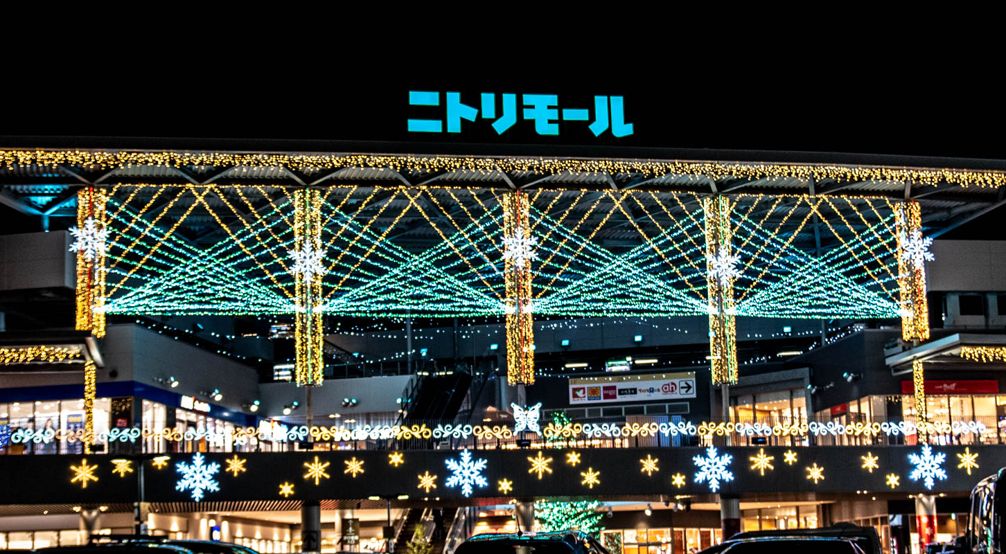 今回はそんなパワーアップした、ニトリモール枚方のイルミネーションのお話を、(株)ニトリホールディングス モール事業部 販促担当の夏坂さんにお伺いしました。