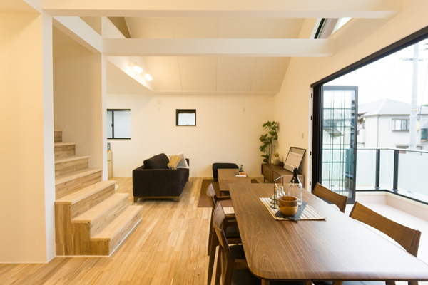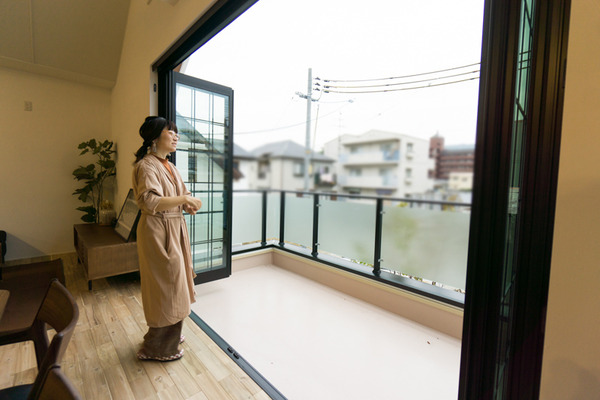 実はこちらのLDKは2階となっていて、外観から見えていた大きな窓はLDKに面したテラスとなっていました。