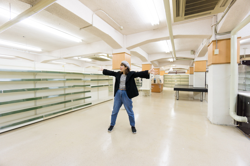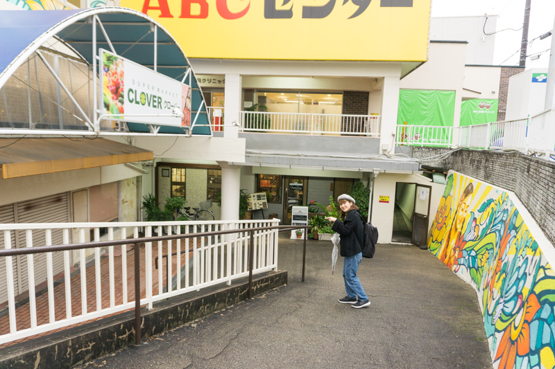 壁画が素敵なスロープを下ったところに、今回ご紹介するスーパー跡地の入り口があります。