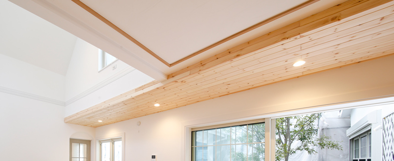 天井のサイドに木板を使用していたり、四角のラインがさりげなく取り入れられていて、”さりげなくナチュラル”が素敵。