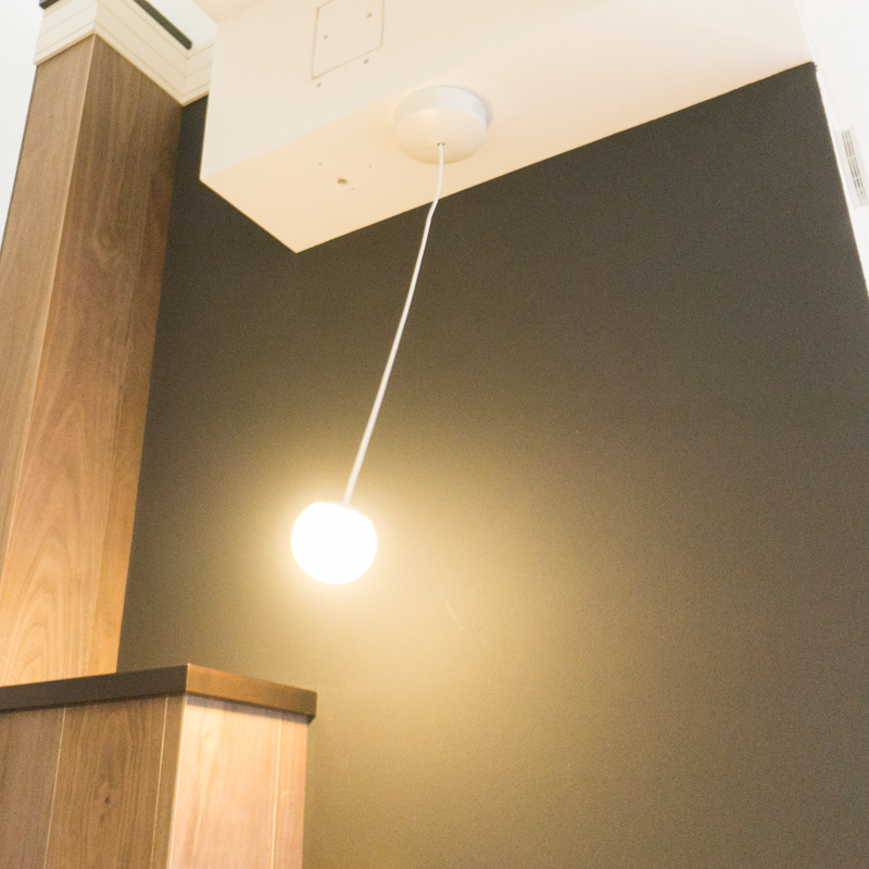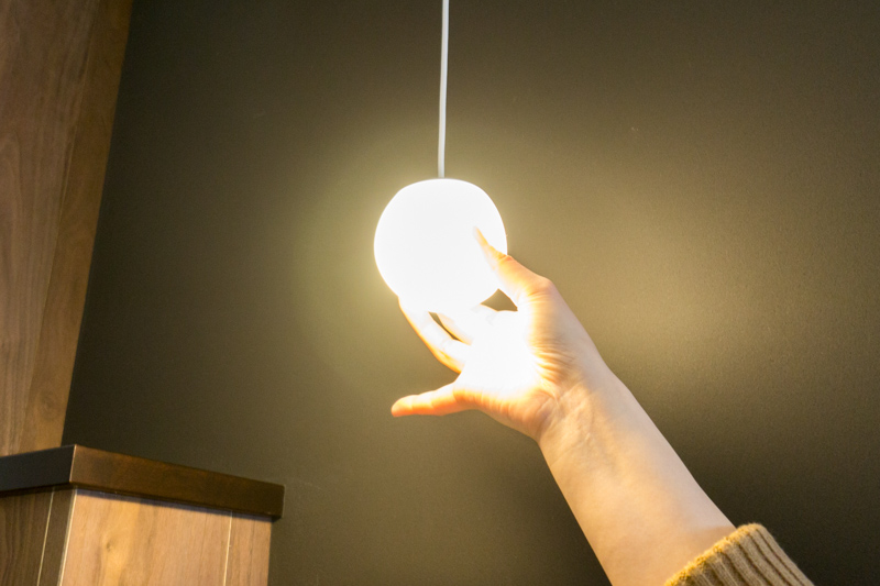 子どもたちが家の中で元気いっぱいボール遊びをして、万が一照明にぶつかっても大丈夫なように、シリコン製の照明なんです!