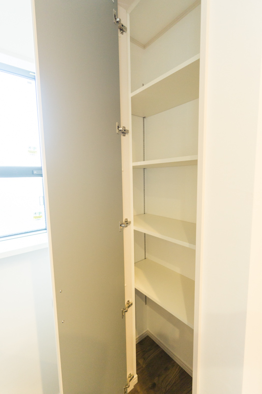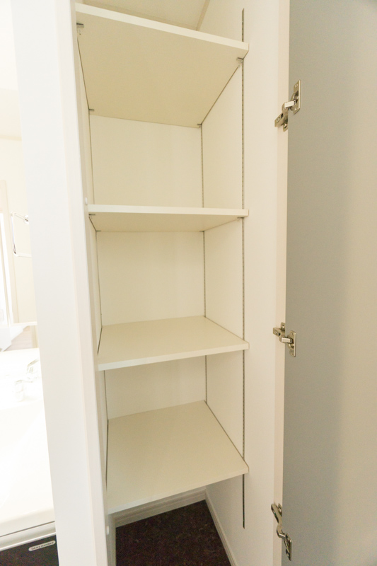洗濯機の横にはタオルや洗濯用品を収納できる大きめのリネン庫。