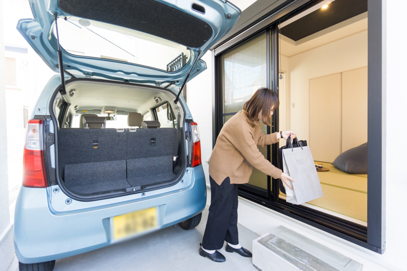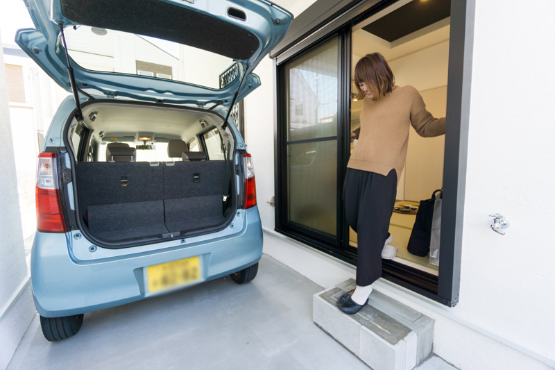 お買い物から帰ったら車のバックドアを開けて、そのまま家の中に荷物を入れられてめちゃ便利♪