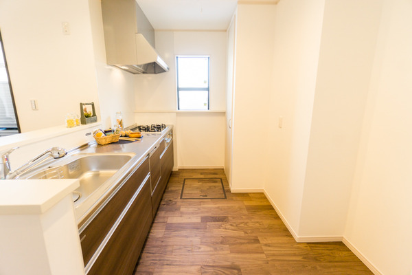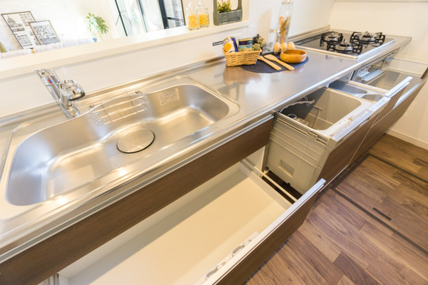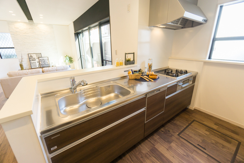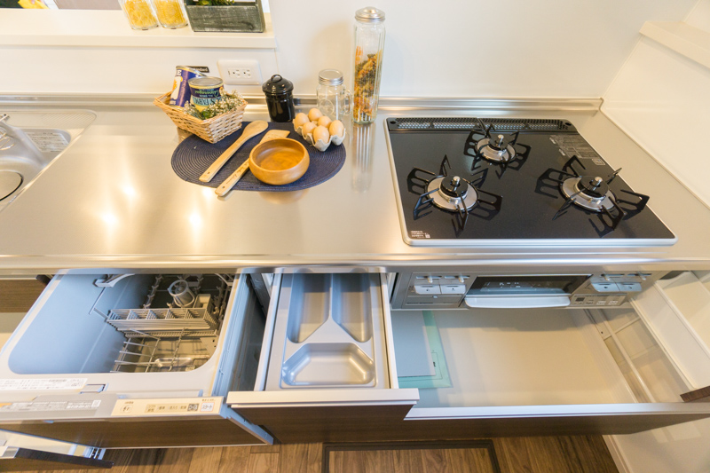 食洗機に三口コンロ、たっぷり収納!言うことなし!