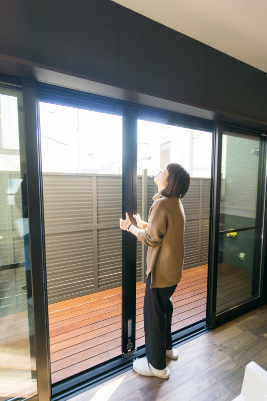 バルコニーの外には高めの壁があるので外から全く見えないのも嬉しい!カーテンをつけなくてもいいのはありがたいですね。