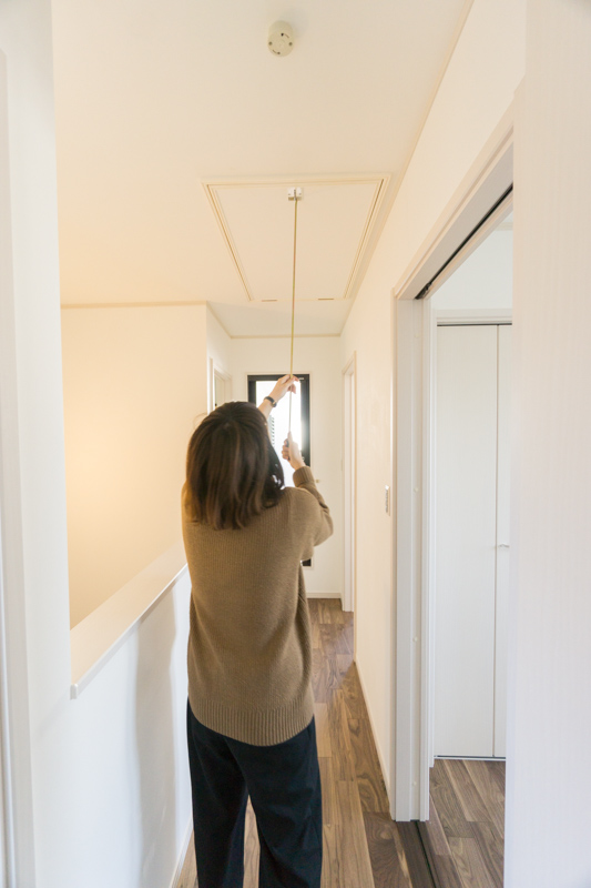 片付けるときにも出すときの逆の流れで戻していけば、また天井に隠れます。