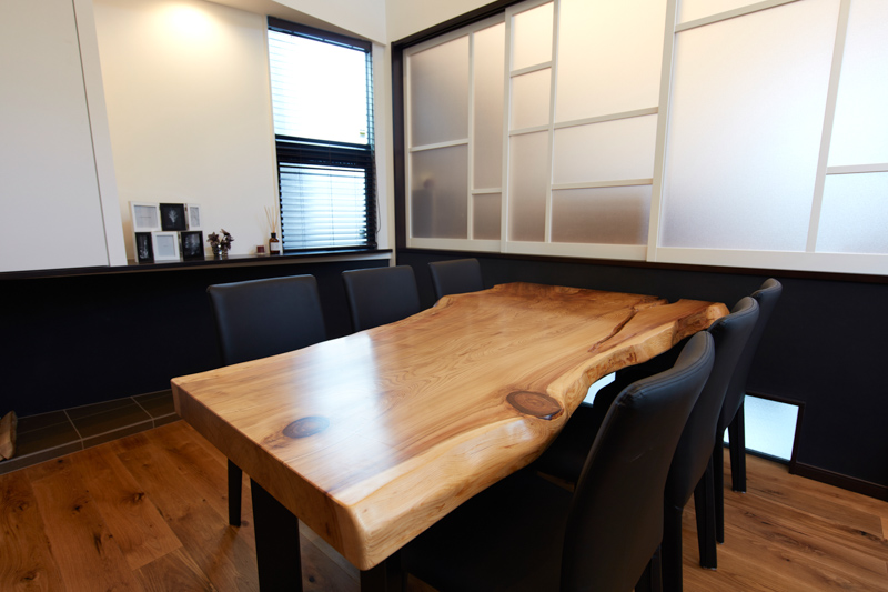 小濱さんこの1枚板のテーブルは、日本三大杉の一つ“魚梁瀬杉(やなせすぎ)”を使用した、野村工務店のオリジナルなんです!バイヤーさんが全国を飛び回って見つけた、とっても良い木でして、もちろんご購入もしていただけます!