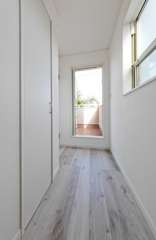 (左の空間には洗濯機スペース。上部分にさりげなく収納があるのが嬉しい)