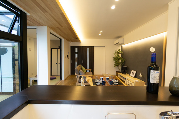 「キッチンで家事をしていても、玄関からの入り口が一直線で見えるから誰かが帰ってきたらすぐわかるのもうれしい!」