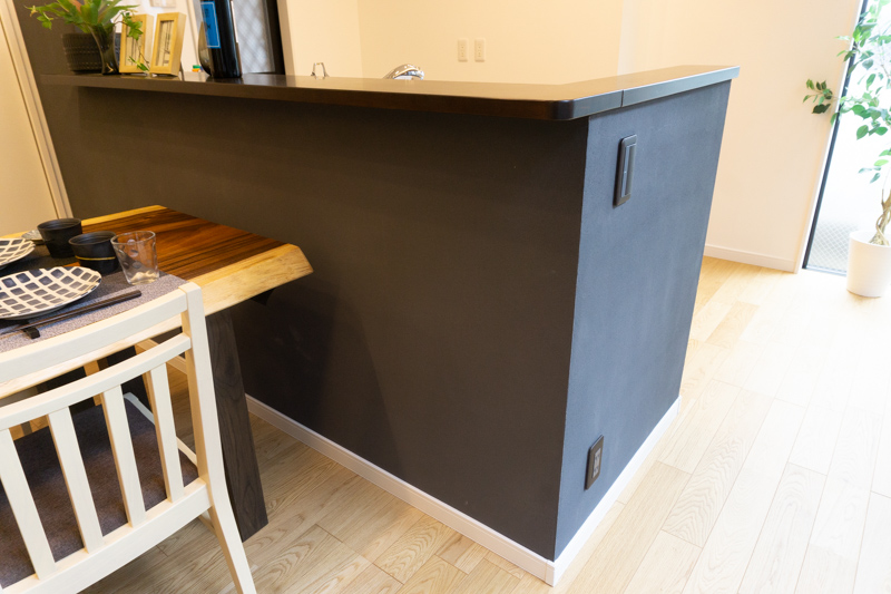 「次はキッチン行ってみよ〜!!黒の漆喰が男前![]()
