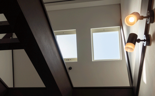 高すぎて手が届かない天窓も、リモコン操作で日避けが出てきます。