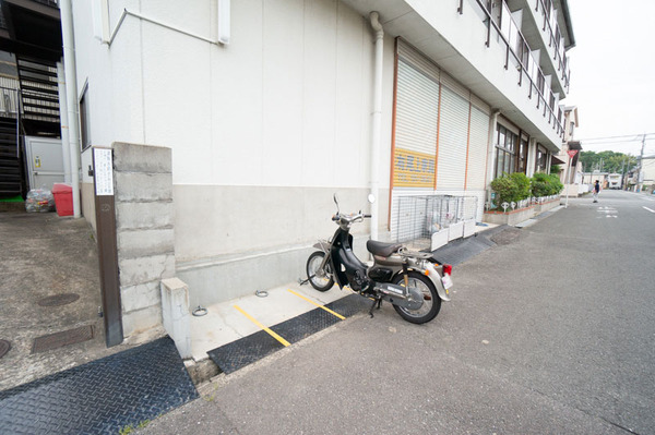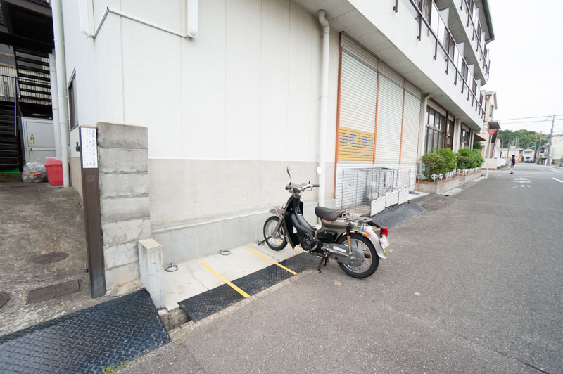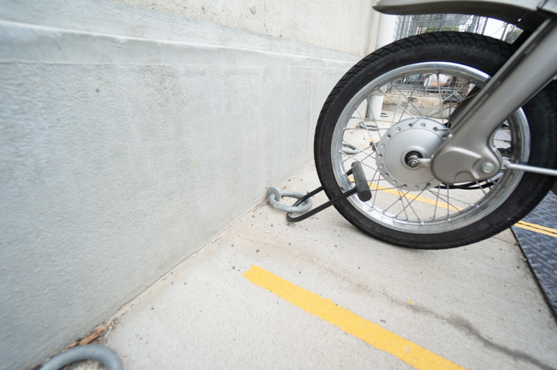 バイク用の盗難防止アンカー(地面から出ている輪っか)も設置しています。