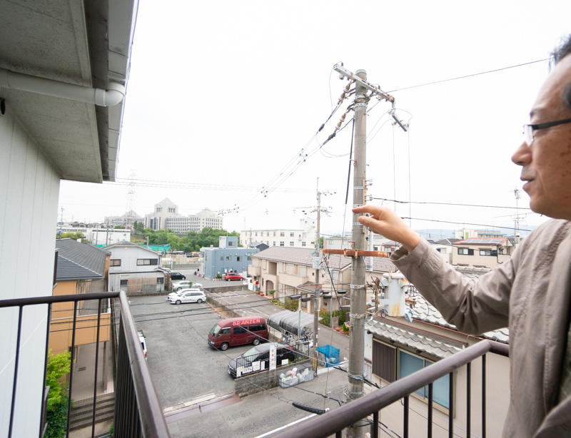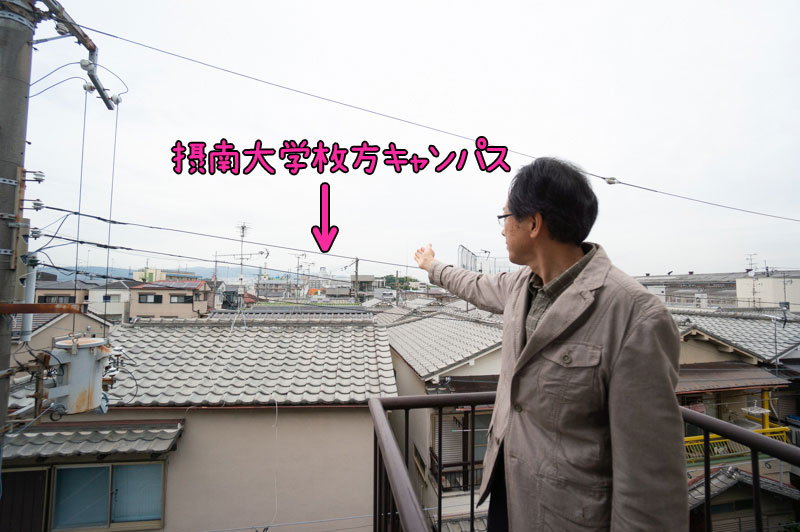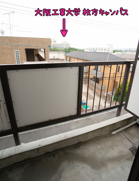 ベランダからは大阪工業大学枚方キャンパスが見えています。