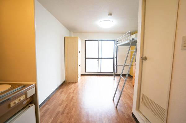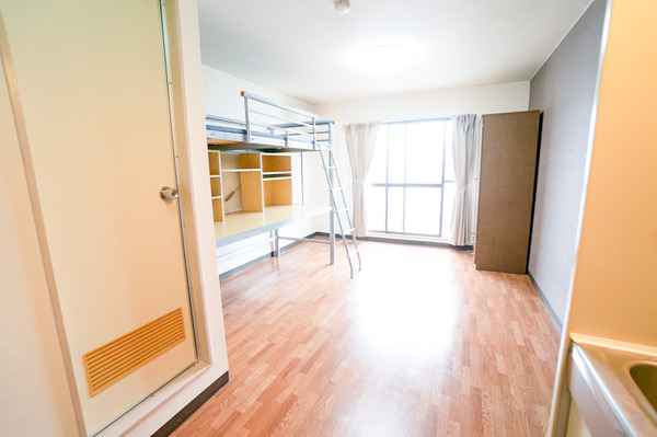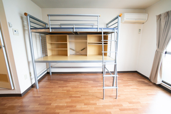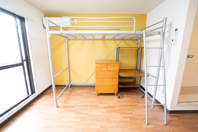 「はしごの上はベッドとしても使ってもらえるし、学生さんによっては布団を下に敷いてベッドの部分を収納スペースとして使ってたりしているみたいです」