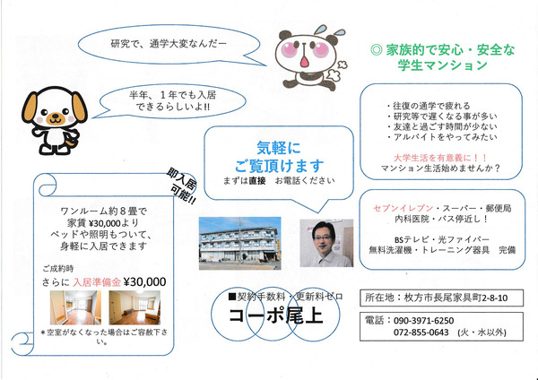 その「尾上家具」の社長である橋本さんの学生向け賃貸マンションが「コーポ尾上」です。