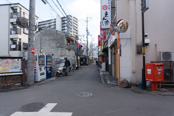 赤い郵便ポストがある筋です。