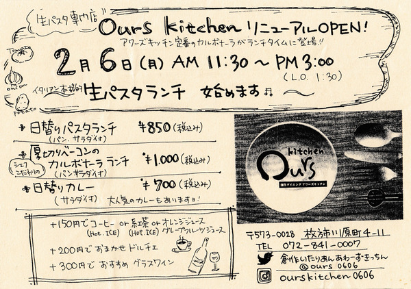 これまでディナータイムにしか食べられなかった、アワーズキッチンの生パスタがついにお手頃ランチに!