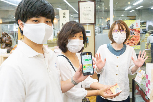 「やったー!僕も1,000円以上お買い物して、アプリの画面を見せたらおせんべいゲットできた!」