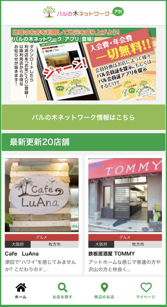 「最近はパルの木ネットワークのアプリをダウンロードして、気に入ったお店をお気に入り登録するだけで特典が使えるようになったんですよ〜!」