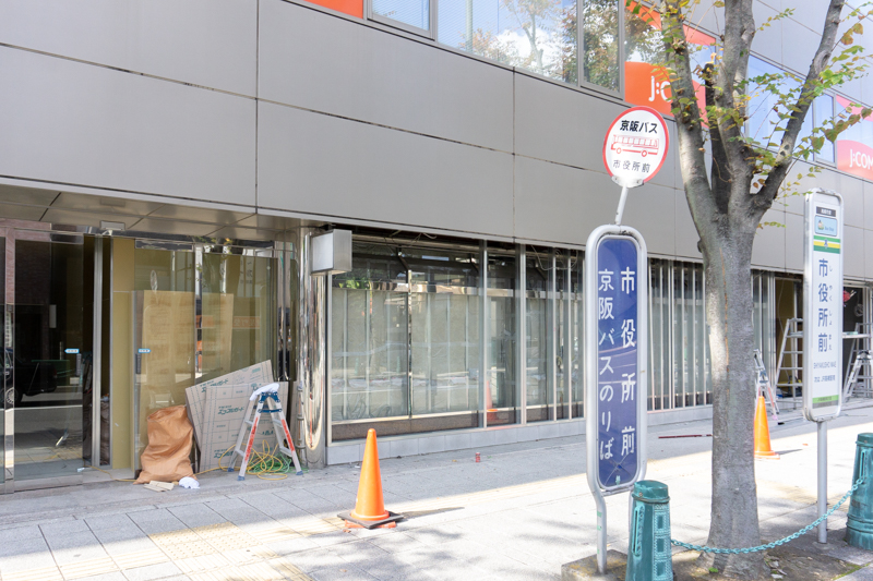 京阪バス 市役所前のバス停のすぐそば。