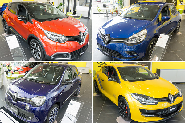 気さくなムッシュ楠本店長に迎えられ店内を見渡すと、色とりどりのルノーの車が並んでいました。