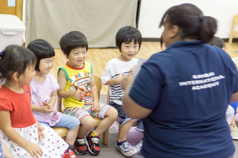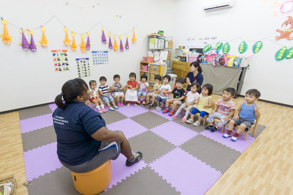 先生は二人体制。英語を母国語とするネイティブの先生がメインで授業を進め、日本人の先生が子どもたちを後ろからサポートします。