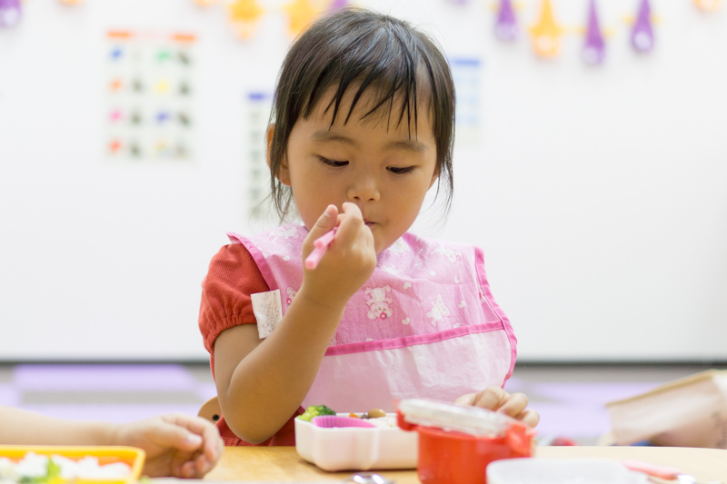 先生は生徒のそばにつきながらも食べさせてあげるのではなく、自分で食べるように自立を促します。その分、時間は長くかかりますが子どもたちはそれぞれのペースで食事を進めていきます。