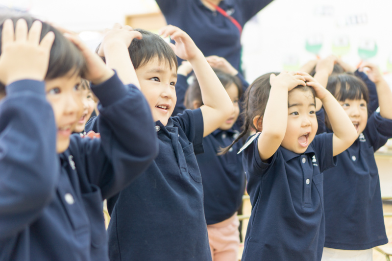 大きな声を出して手足を中心に身体全体を使い、遊び感覚で英語を習得できます。