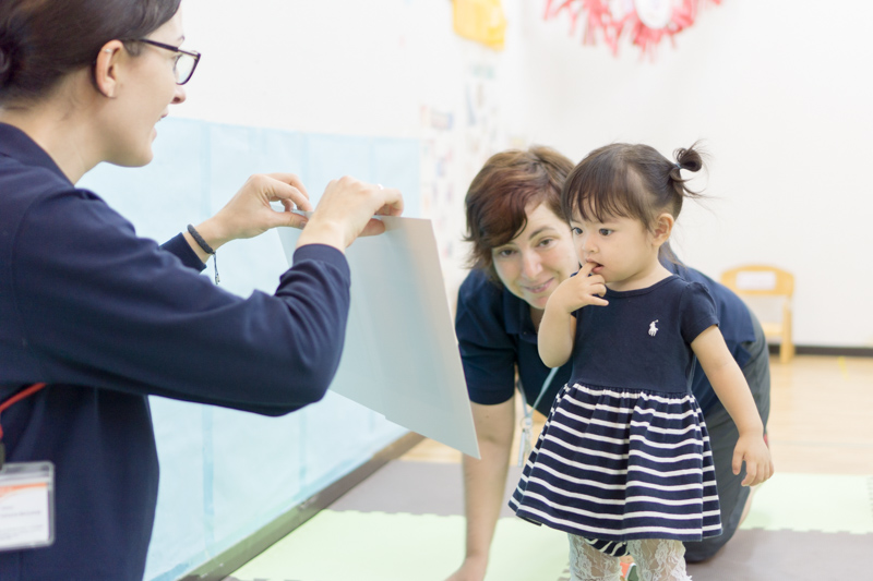 今回は1歳児の Teddy Bearクラスと2歳児の Mermaidクラスの、英語だけじゃない“右脳開発プログラム”を取り入れた授業に密着してきました。