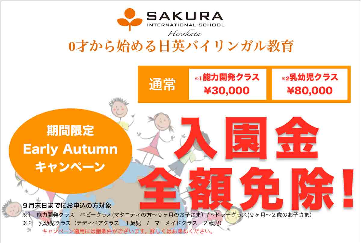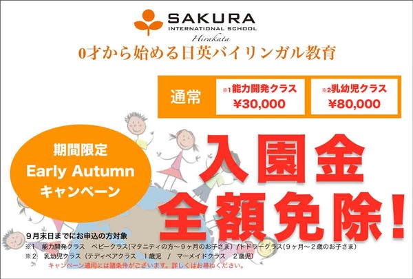 これは0歳~2歳の能力開発クラス、今回取材していただいた1歳~2歳児のテディーベア・マーメイドクラスの入園金を全額免除するものです。