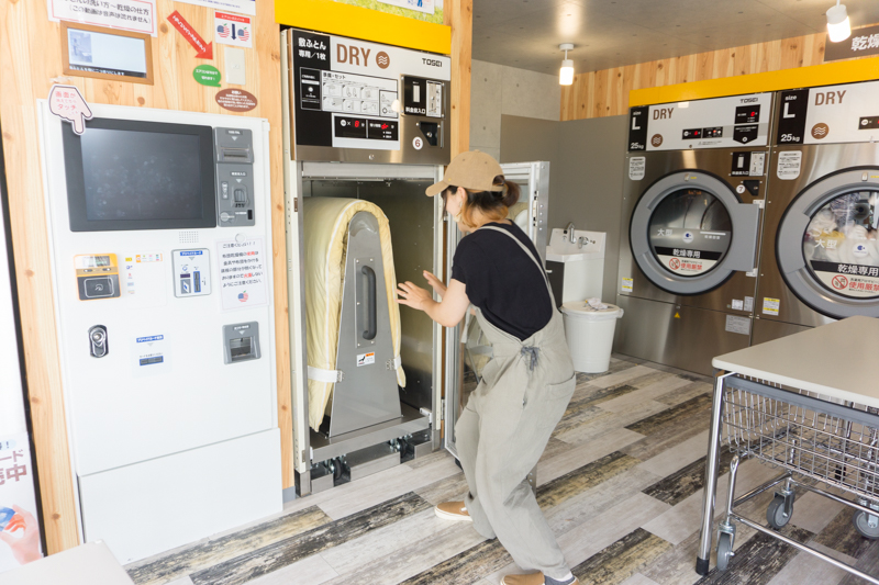 「そう言えば、ひらつーで大阪初・布団専用乾燥機が置いてあるコインランドリーの記事を見たような…。折角やし一回使ってみようかな?」
