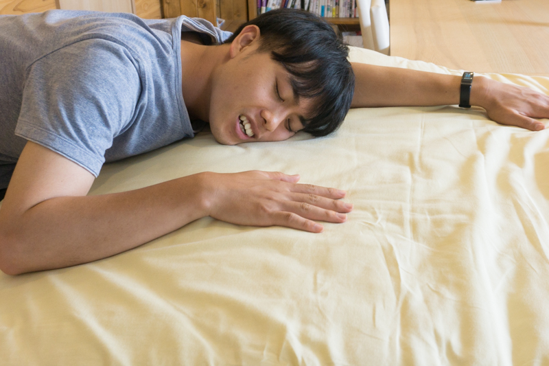 「一応外に干したりもしますけど、仕事が忙しくてなかなか干せない日もありますね…。あとはファ◯リーズかけたり。一人暮らししてからずっとこの敷布団使ってるんでもう結構くたくたっすね!あ、触ります?」