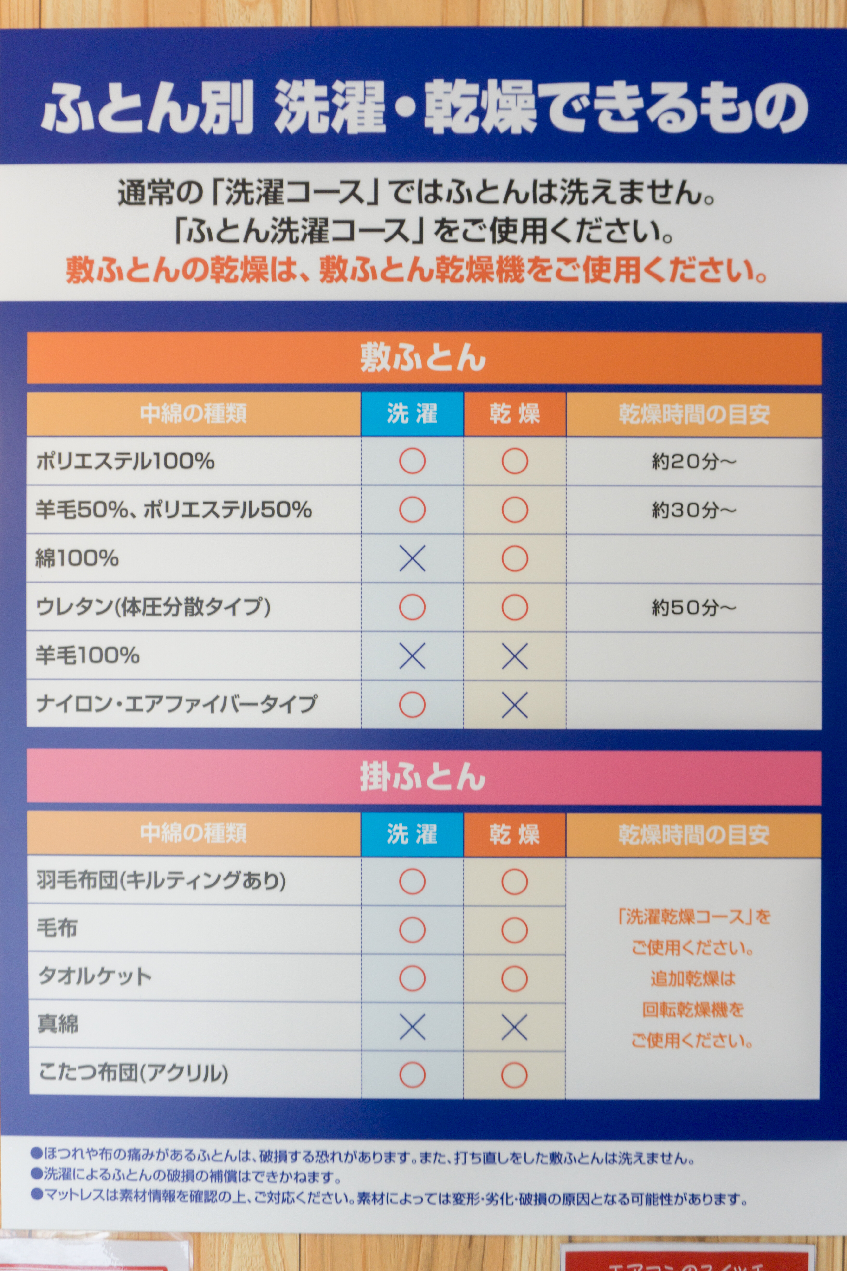 (店内に貼ってある敷布団の洗い方。はじめての利用でも安心です。)