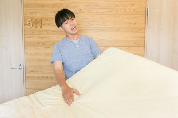 「水分を含んでいるから布団がちょっと重くなってる…!でも、小柄な私でも頑張ったら引き出せる重み…!(笑)」