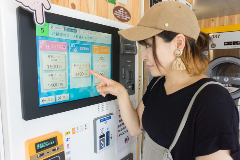 先程と同じく精算機で精算を済ませたら自動で運転開始!乾燥時間は敷布団の素材によって変わります。今回は32分コース(400円)で乾燥しました。(8分毎に100円)