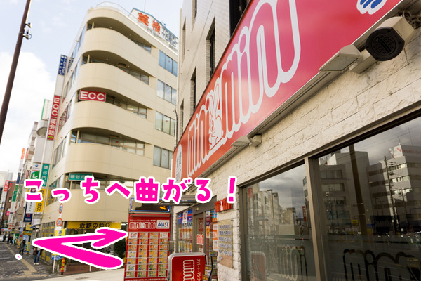 枚方市駅中央改札の2番出口から出て、そのまま進んで交差点を渡ります。