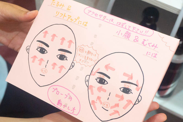 たるみ&リフトアップや、小顔&むくみが気になる方にオススメのプローブの動かし方が描かれたイラストやメニュー表も用意されているので、好きな動かし方を見つけてくださいね!