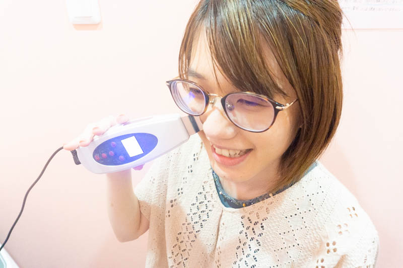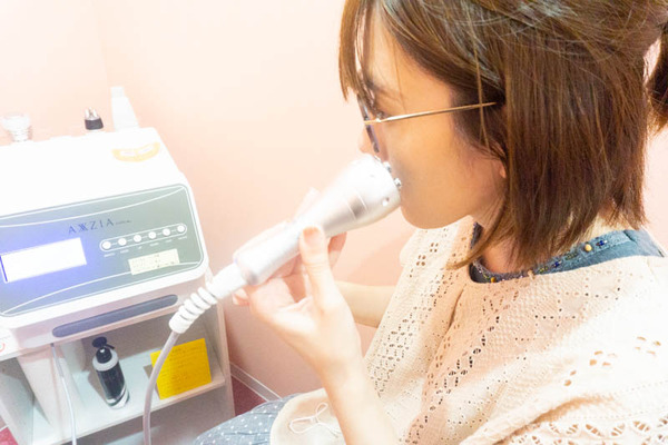 仕事帰りに寄って、メイクを落としてこの美顔マシンを利用していただいて、さっぱりした状態でおうちへ帰る、という使い方もできますよ!」