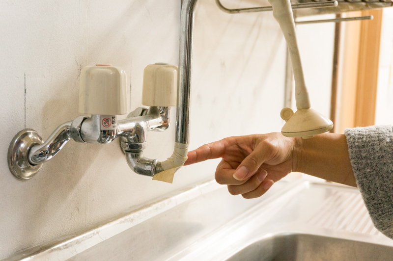 ふろ「ここも水漏れもしてて旦那がテープ貼ってるわ〜」