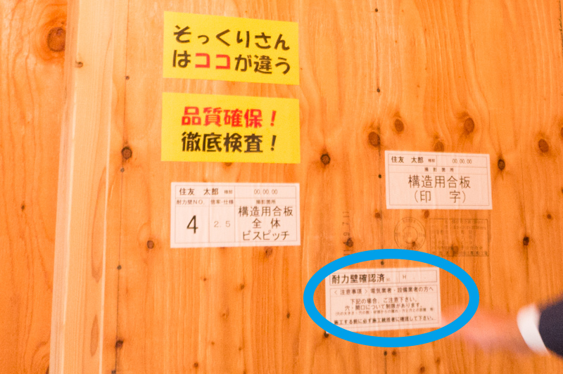 こういうところって上にボードや壁紙を貼ると見えなくなるので、いい加減にしてしまう業者もありますが、住友不動産では「検査工事部」が工事中に検査をして、合格したらこのシールを貼って、クリアできれば次に進める、とひとつひとつていねいに工事を進めていきます。」