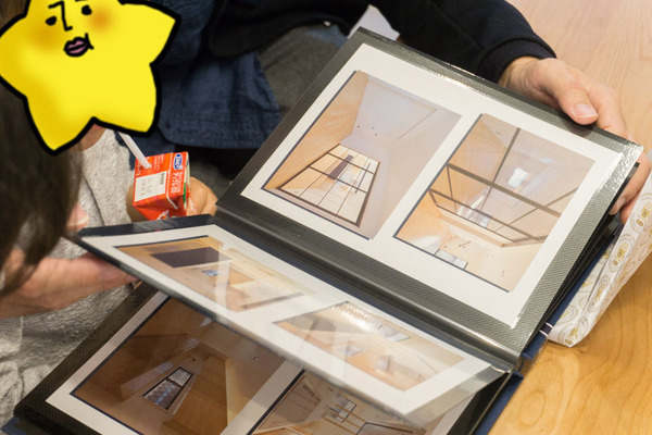 インタビューの前に、匠建枚方からお家が建つまでの記録をまとめた「完成までのアルバム」をプレゼント。