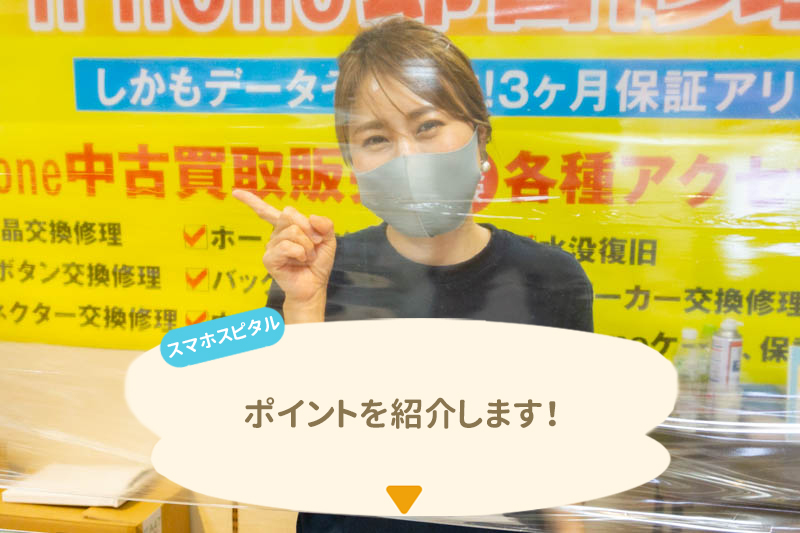 「スマホスピタルではバッテリー交換や、画面破損の修理も行っているので、最近おかしいなって思っり、気になったらチェックしてみてください!」