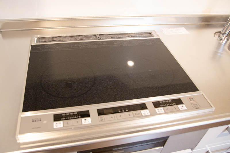 「コンロはIHクッキングヒーターなので火事の心配もありませんし、お掃除もラクラクです!