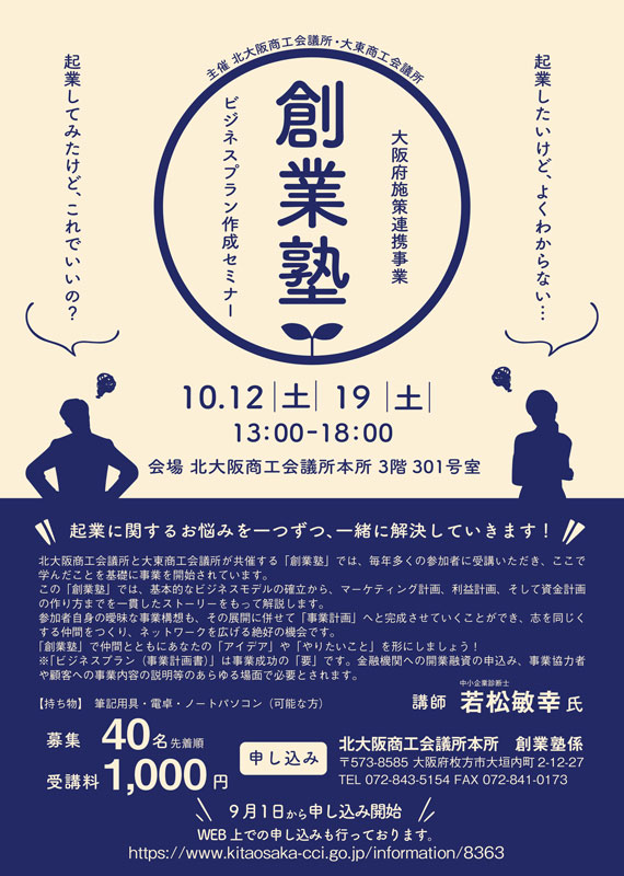 このセミナーでしっかりとビジネスプランを作成し、自分が開業するまでのストーリーを描きましょう。