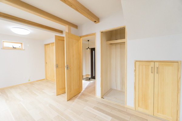 収納もそれぞれについています。手前の部屋の収納は開けるとこんな感じ。